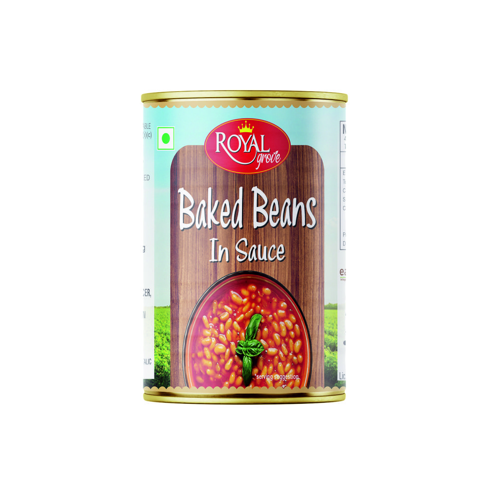 Royal Grove Baked Beans in Sauce are prepared from carefully selected beans that are slow-cooked until tender and coated in a smooth, savoury tomato-based sauce. The sauce carries a balanced blend of sweetness, acidity, and mild spices, giving the beans a comforting taste and satisfying texture.