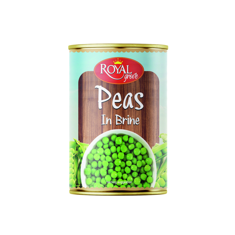 Royal Grove Peas in Brine is prepared from quality green peas that are gently processed and preserved in light brine to maintain their freshness, texture, and vibrant green colour. The peas remain plump and intact, making them suitable for a wide range of everyday and special-occasion recipes.