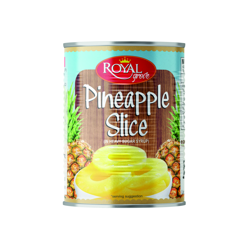 Enjoy the bright, tropical taste of pineapple all year round with Royal Grove Pineapple Slices in Heavy Sugar Syrup. Carefully selected pineapples are sliced evenly and preserved in a rich sugar syrup that enhances their natural tangy-sweet flavour while maintaining a soft yet firm texture.