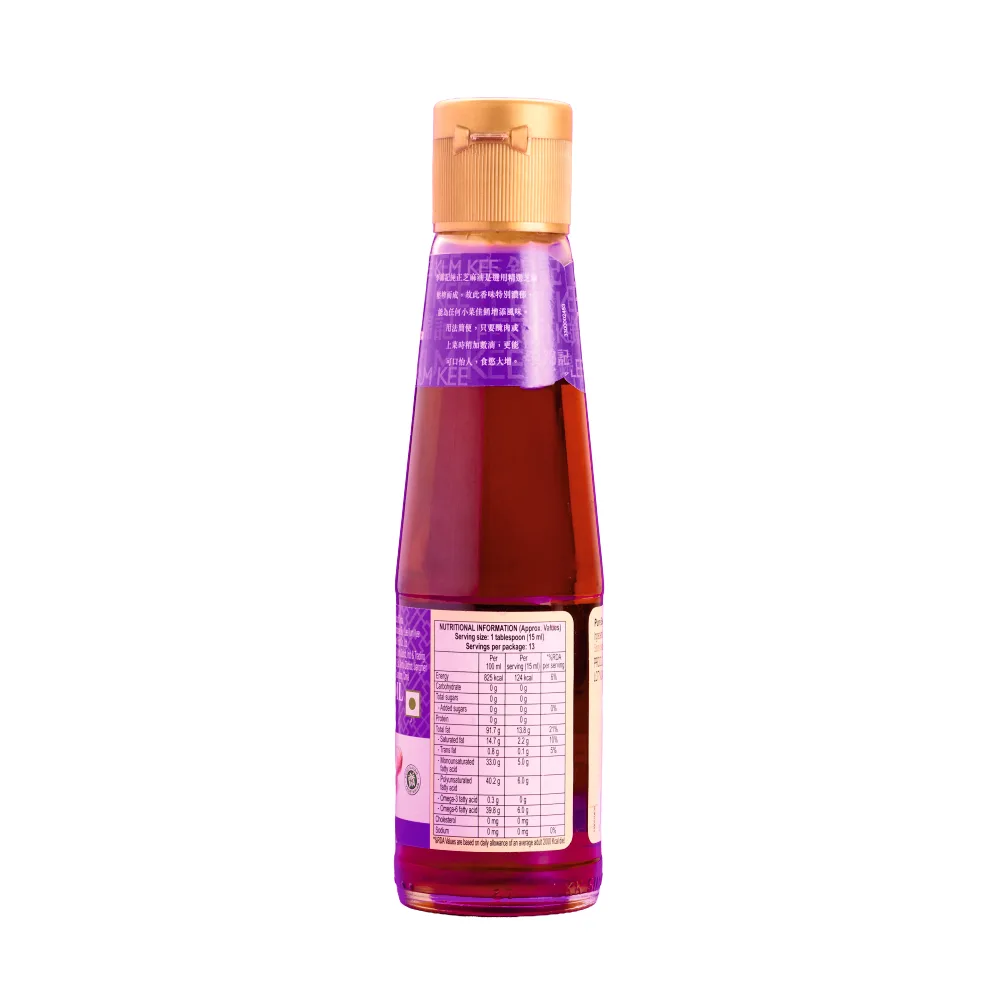 Elevate your culinary creations with Lee Kum Kee Pure Sesame Oil. Made strictly from selected roasted sesame seeds, this pure oil is carefully processed to ensure it retains a strong, authentic sesame flavour. It acts as an indispensable ingredient in any kitchen, effortlessly accenting the overall taste of your dishes.