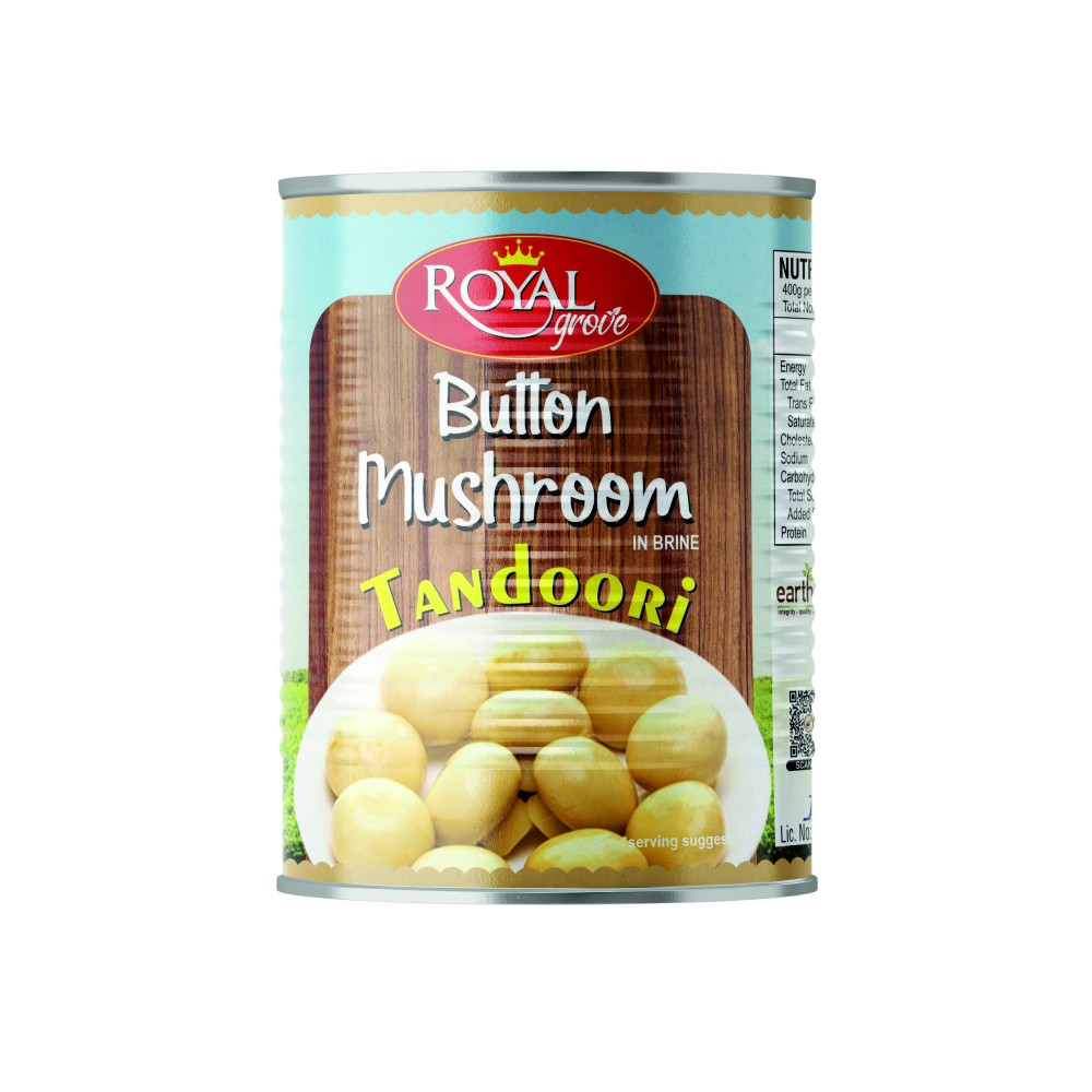 Royal Grove Tandoori Button Mushroom is made from carefully selected whole button mushrooms that are cleaned, sorted, and preserved in light brine to maintain their natural firmness and bite. Designed for tandoori-style and high-heat cooking, these mushrooms hold their shape well while absorbing marinades, spices, and sauces beautifully.